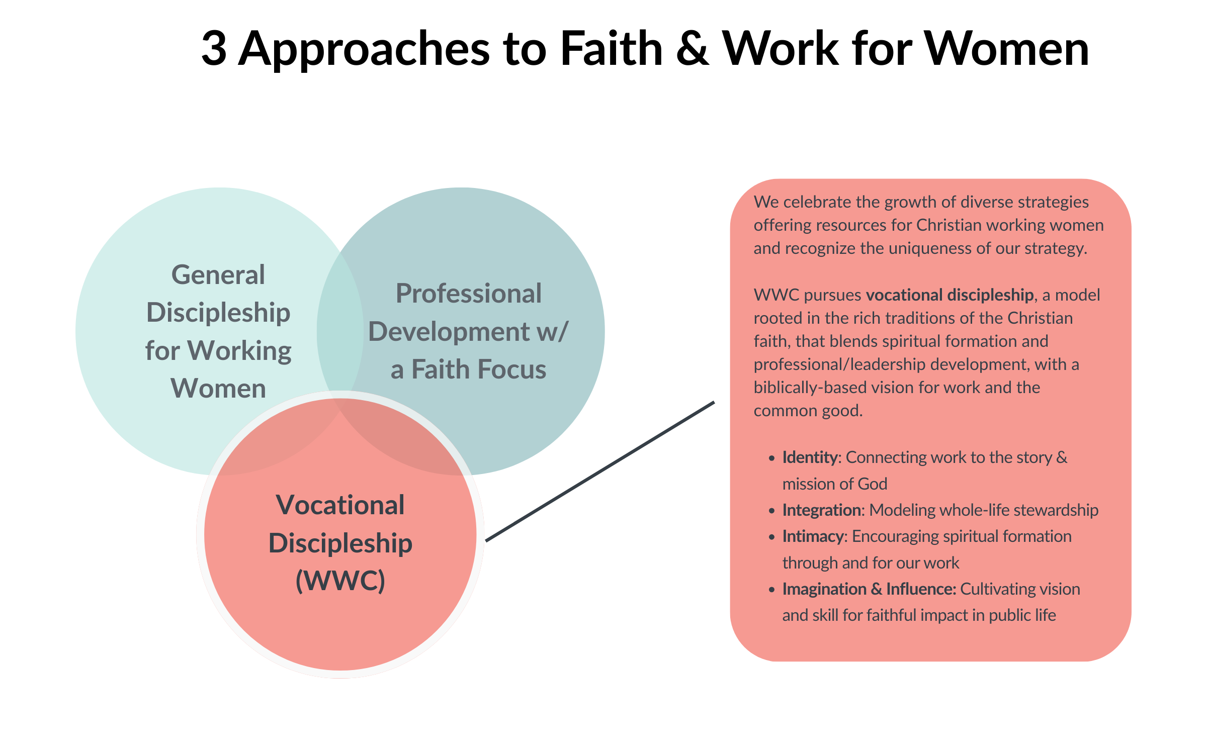 Women, Work, & Calling is a discipleship ecosystem whose network and programming