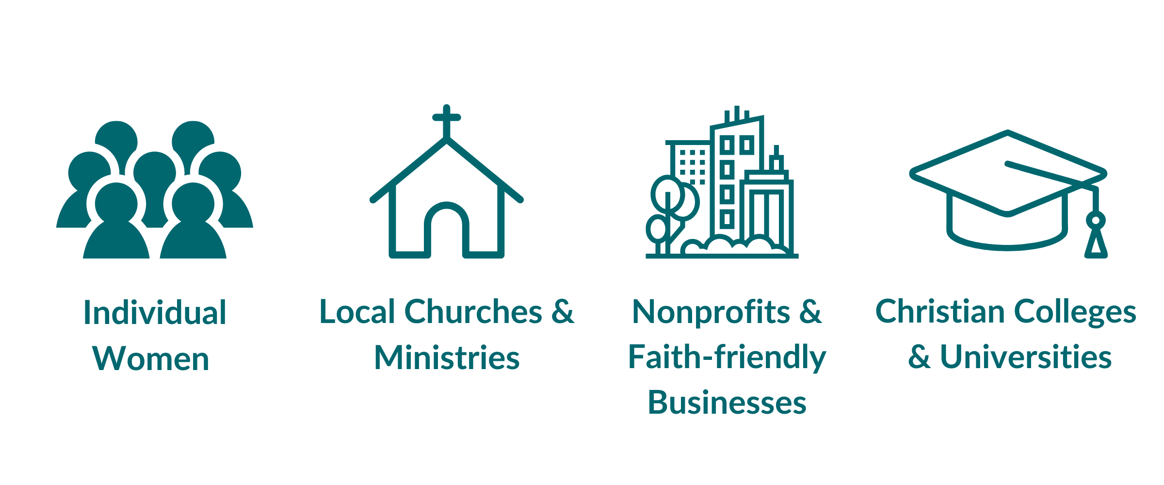 In addition to serving individual women, we broaden the approach to women’s discipleship by partnering with churches, faith-based nonprofits, Christian colleges and universities, faith-friendly businesses, and other like-minded organizations to bring resources for vocational discipleship to their communities.